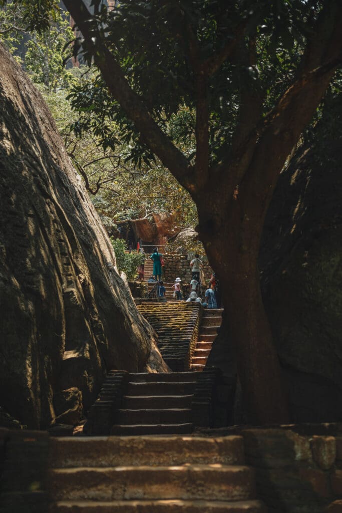 Weekendtur til Sigiriya Fredag formiddag kører vi fra Galle mod Sigiriya (ca. 5–6 timer). Vi tjekker ind på et lækkert hotel med pool og morgenmad. Om eftermiddagen venter en let solnedgangshike til Perungala Rock med udsigt til Lion Rock. Aftensmad spiser vi sammen i byen.